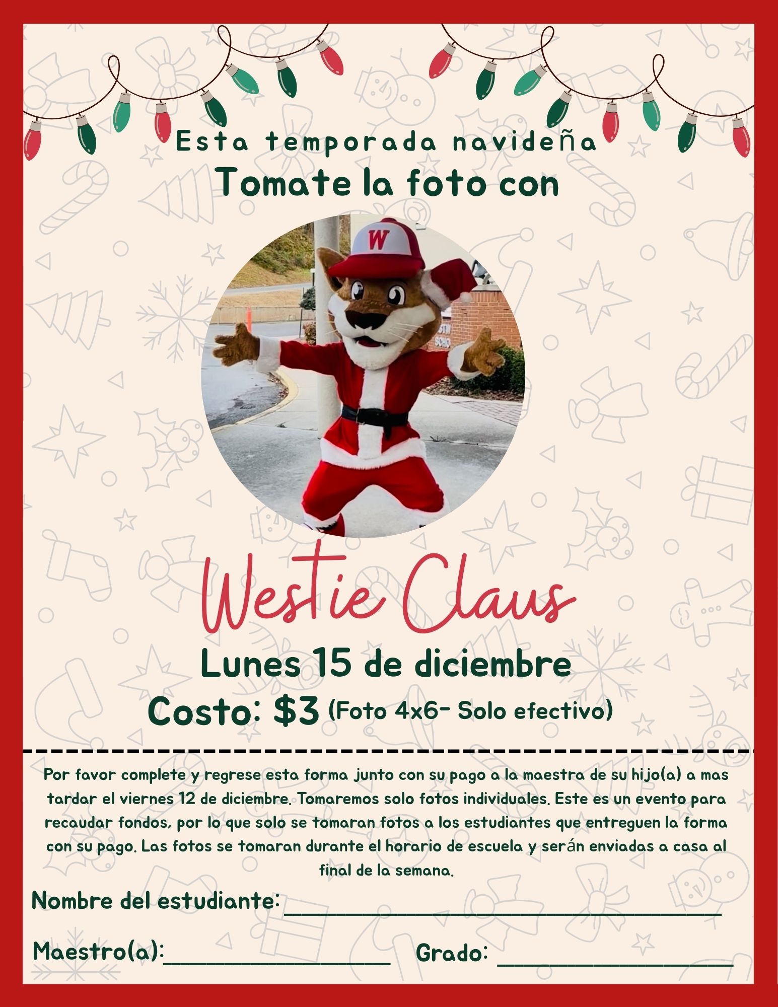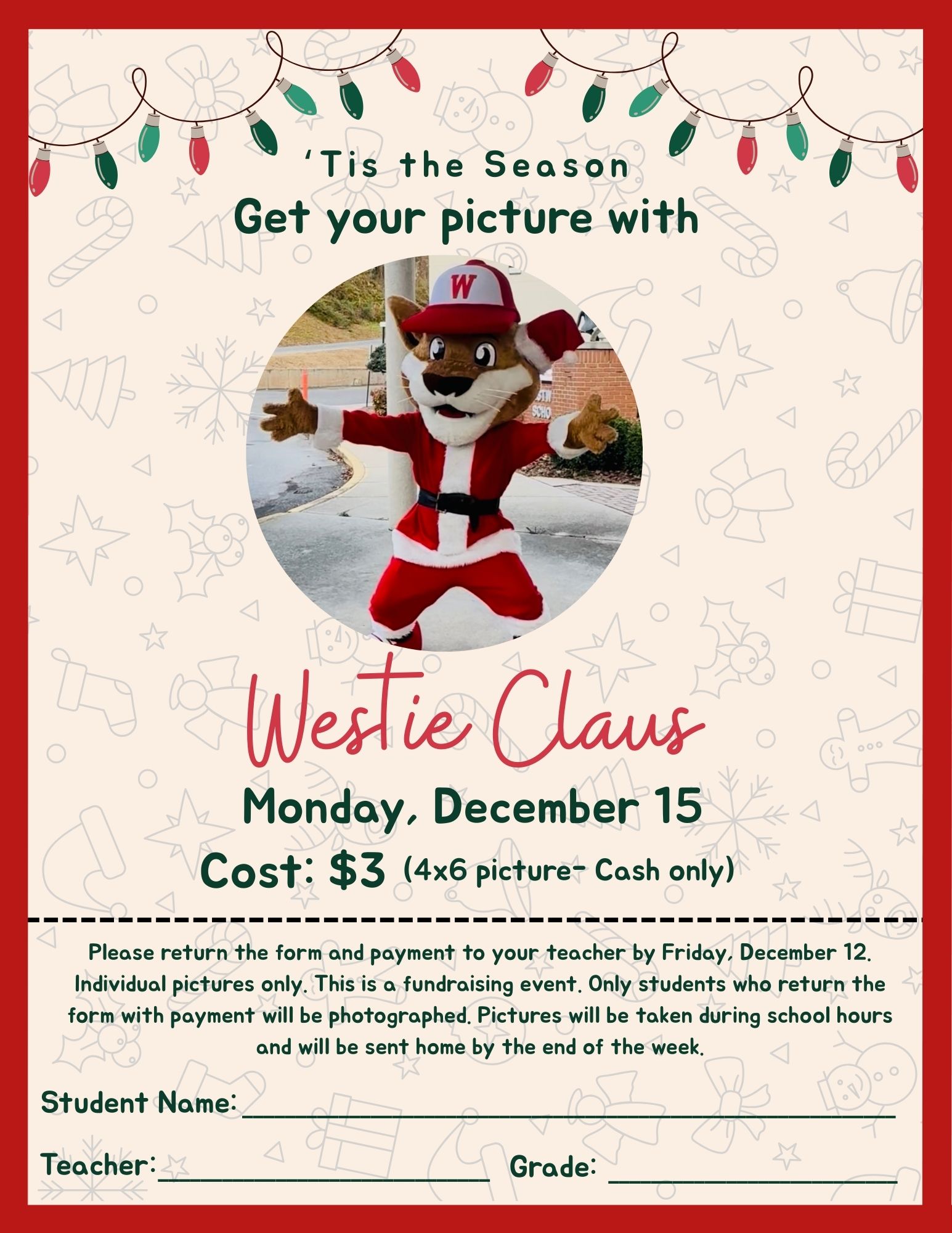 Westie Claus pictures (only students who have returned order form and money will have their picture taken)